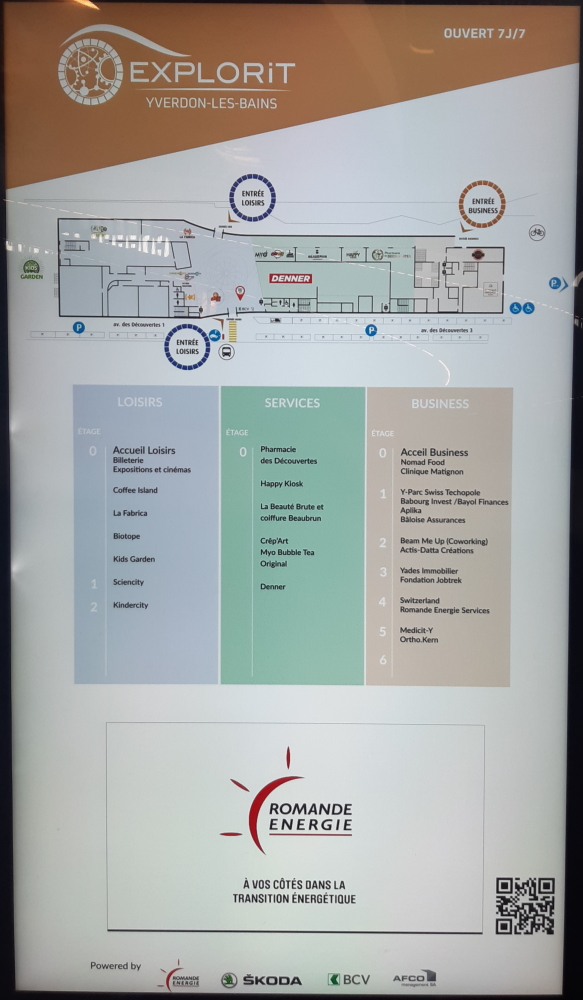 Nous avons ensuite pris part à une visite d'EXPLORiT, guidés par M. Jean Christophe Gostanian, entrepreneur et créateur de ce nouveau centre d'innovation. Le centre comprend deux parties, la première consacrée au Business & Services et la deuxième aux Loisirs & Découvertes, reliées par un impressionnant atrium en bois. Le bâtiment est raccordé au chauffage à distance et géré dans un microgrid avec un parc solaire d’une puissance de 228 kWc. Le concept énergétique a été planifié par Romande Energie, notamment avec la récupération de chaleur sur les monoblocs et la gestion intelligente des bâtiments.